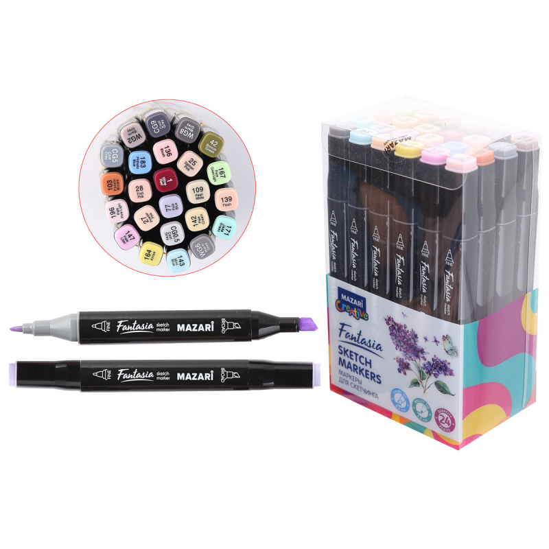 —Набор маркеров для скетчинга двусторонние FANTASIA, 24 цвета, Grey- pastel colors, M-15024-24