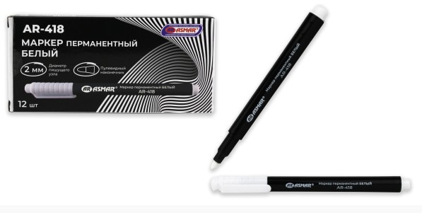 —Маркер перманентный белый, 2 мм, пулевидный наконечник, AR-418;белый