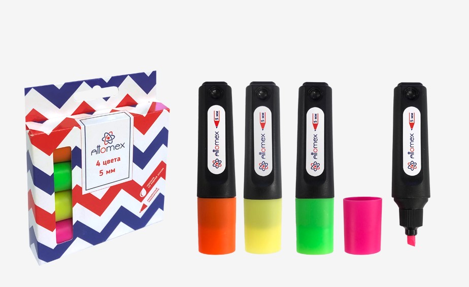 Набор маркеров-выделителей, Attomex, (04 цвета), желт, зел, оранж, роз, 1-5 мм, 5045357