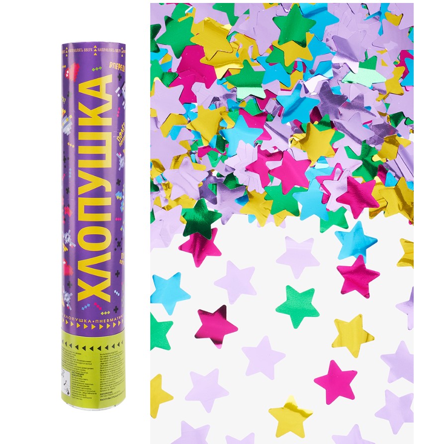 —Пневмохлопушка (12;30 см), Космические пиксели, Звезды, фольга, ассорти, 823164
