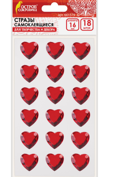 —Стразы самоклеящиеся 'Сердечки', 5-18 мм , 18 шт , ассорти, 661579