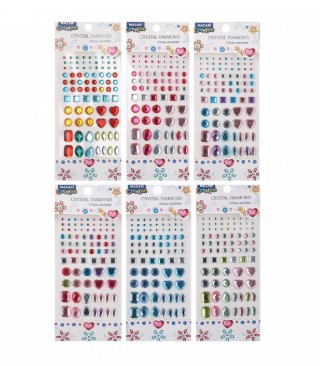 —Стразы-наклейки акриловые АССОРТИ, 8х19 см, 6 дизайнов, ОПП-упаковка с европодвесом, M-8648